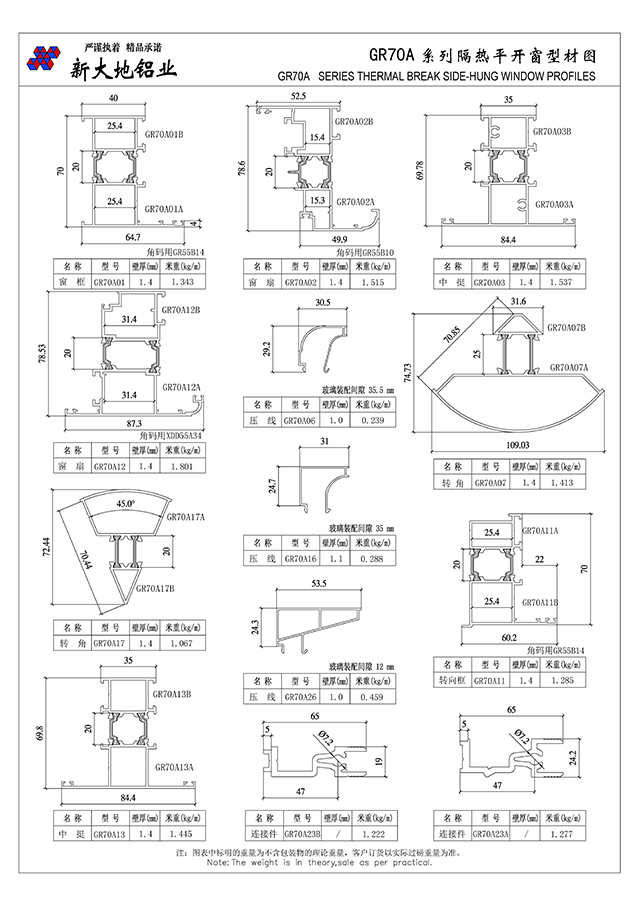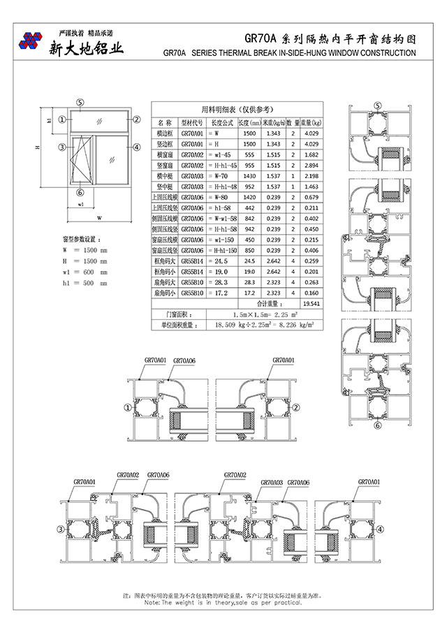 GR70A系列隔熱平開窗